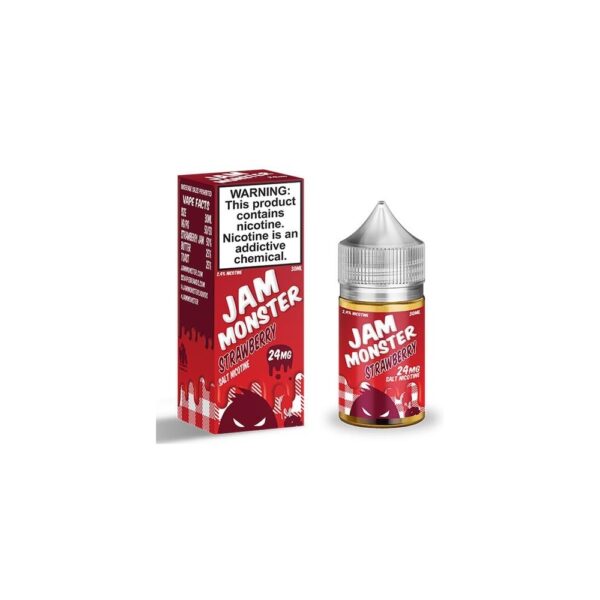 Jam Monster SALTS’tan çilek vape suyu, biraz daha fazla sabah keyfi için pürüzsüz ve dengeli boğaz karışımı ile 30 ml’lik bir şişede gelir.