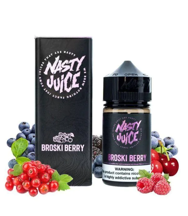 Nasty Broski Berry birçok orman meyvelerinin karışımından oluşmuş fresh premium likit çeşididir. Dikdörtgen prizma şeklinde kutuya sahiptir. Kutu genel olarak siyah ve lila renk ağırlığındadır. Kutu üzerinde kabartmalı Nasty Juice kutusu bulunmaktadır. Likit kutusu güneş ışığı geçirmediği için e sigara likitinizi saklamak/muhafaza etmek için idealdir.