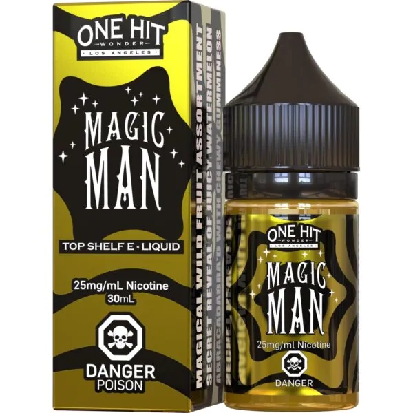 One Hit Wonder Magic Man Salt, markanın meyveli Premium likit çeşitlerinden birisidir. İçerisinde karpuz ağırlıklı ve diğer meyvelerin bulunduğu aromanın yanı sıra üzerine hafif jelabon ve sakız aromaları serpiştirilmiştir. USA menşeili olan firma, kaliteli ve lezzetli içerikleri sayesinde tüm dünyada global çapta ün kazanmış olup bütün e likit türleri satış rekorları kırmıştır.
