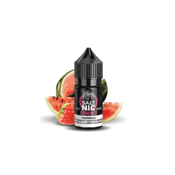 Ruthless Nicotine Salt Ez Duz It 30ml, yaz aylarında buharlamak için çilek ve karpuzların serin ve tatlı bir karışımıdır. Meyvelerin tadı şaşırtıcı derecede otantiktir, tıpkı dalından koparılan taze meyveler gibi sizi tatmin eder.
