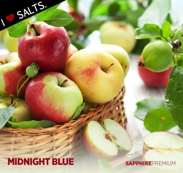 Sapphire I Love Salts serisinin Midnight Blue adlı likitidir. Uzun süreli kullanımlar için özel olarak üretilen Midnight Blue, tatlandırılmış tütün aromasının kırmızı ve yeşil elma ile eşsiz buluşmasından ortaya çıkıyor. Bu özel buluşma vazgeçilmez bir deneyim sunuyor.