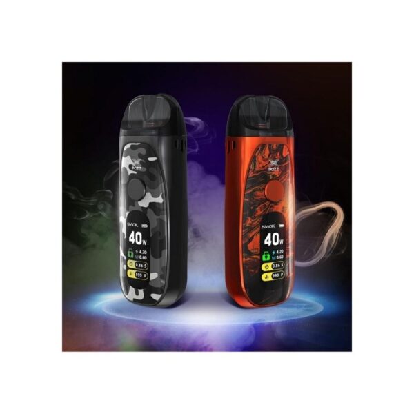 SMOK Pozz X Pod’a gelince, uzun ve rahatlatıcı bir içim sağlayan 4.5ml’lik büyük bir e-likit kapasitesine sahiptir. Hızlı ve kolay sıvı doldurma için yandaki silikon tapayı açın. SMOK Pozz X Pod, bobin uyumluluğunu en üst düzeye çıkarmak ve üst düzey kullanıcıların çekim ihtiyaçlarını karşılamak için RPM RBA coilide dahil olmak üzere tüm RPM40 coilleriyle uyumludur. Buna ek olarak, POZZ X RPM kapsülünün coili sıkıca saran ve coile hava akışı için en kısa yolu oluşturan, böylece lezzet keyfi ve buhar üretimini en üst düzeye çıkaran ayarlanabilir bir hava akışı halkası ile donatılmıştır. Ayrıca, Pozz X’in paneli, POZZ X’in daha ince, daha sert ve daha parlak olmasını sağlayan dört katmanlı bir yapıya sahip kompozit malzemeden yapılmıştır. SMOK Pozz X kapsül kiti, 40w’a kadar ateşleye bilen 1400mAh pil ile çalışır. Buna ek olarak, Pozz X ana gövde cephesi, watt, voltaj, direnç, puf sayısı ve her pufun zamanı gibi temel bilgileri daha net görüntülemek için genişletilmiş yazı tipini kullanan 0.96 inçlik bir ekrana sahiptir. Ekranın üstündeki tek düğmeli dairesel ateş düğmesi işlemleri basitleştirir ve kolaylık sağlar.