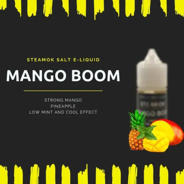SteamOK Firmasının Ürettiği Mango Boom Adlı Pod Modlarla Uyumlu Salt Likittir. Özel bıçak darbeleriyle temizlenmiş Ananas, İnce İnce kesilmiş Mango ile birleştirildi, Çok az Nane damlantılan bu lezzet şimdiye kadar ki En ferah ve En nefis Mango Ananas Lezzeti oldu!